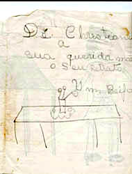 "De Christiane a sua querida mãe o seu retrato - Um beijo" (frente do bilhete)