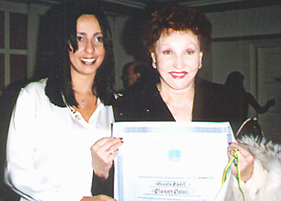 "Monah Delacy recebendo da Vereadora Renata Fadel o título de Cidadã Honorária de Petrópolis"